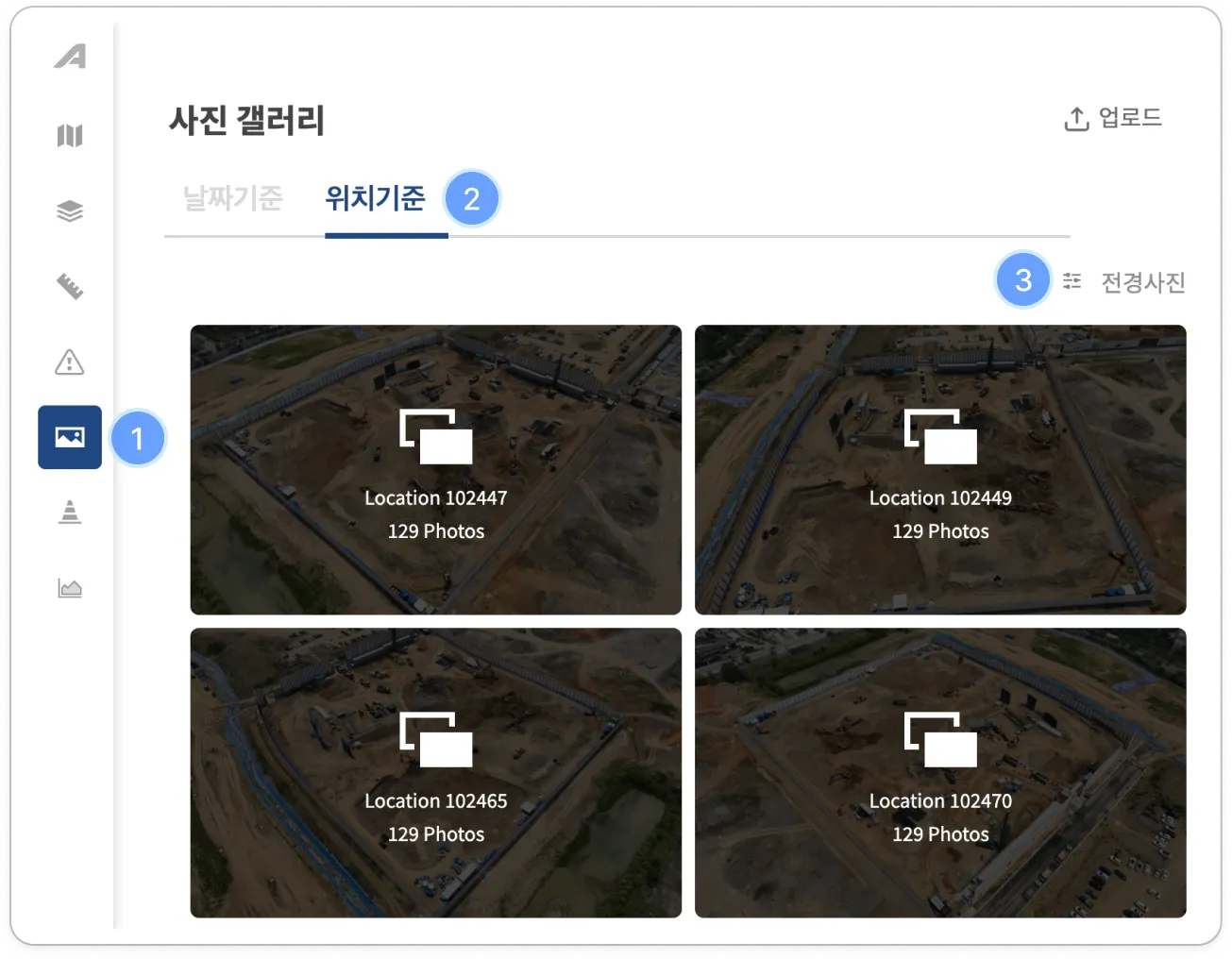 ‘위치’와 ‘카메라 앵글(방향)’에 따라 전경사진이 자동으로 필터링 됩니다. 따라서 사진의 위치와 카메라 앵글(방향)이 일정하지 않을 경우, 타임랩스 자동 제작이 어려울 수 있어요.