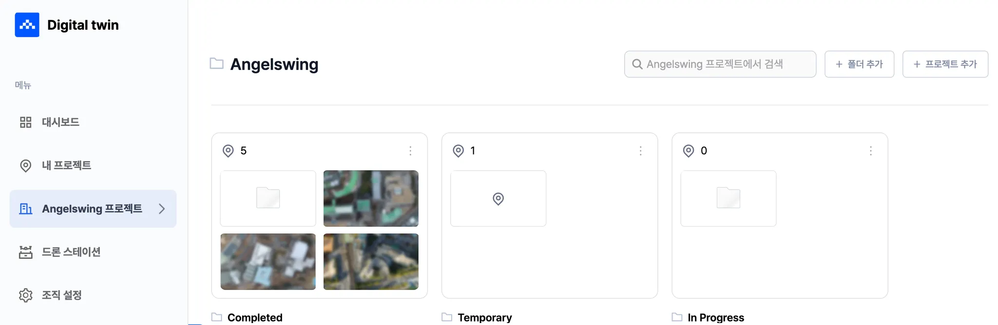 프로젝트를 폴더에 정리하려면, 먼저 ‘새 폴더’ 버튼을 눌러 폴더를 만들어주세요.