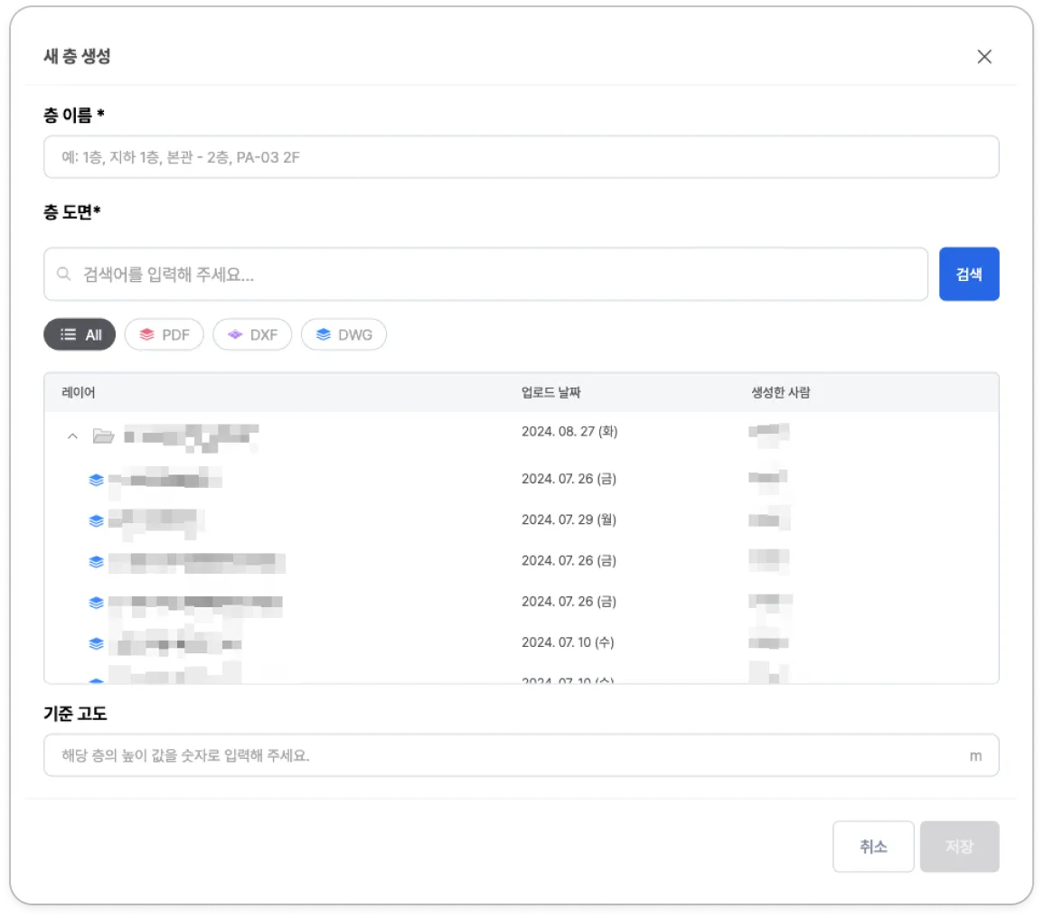 ‘새 층 추가’ 버튼을 눌러 층을 생성할 수 있습니다.