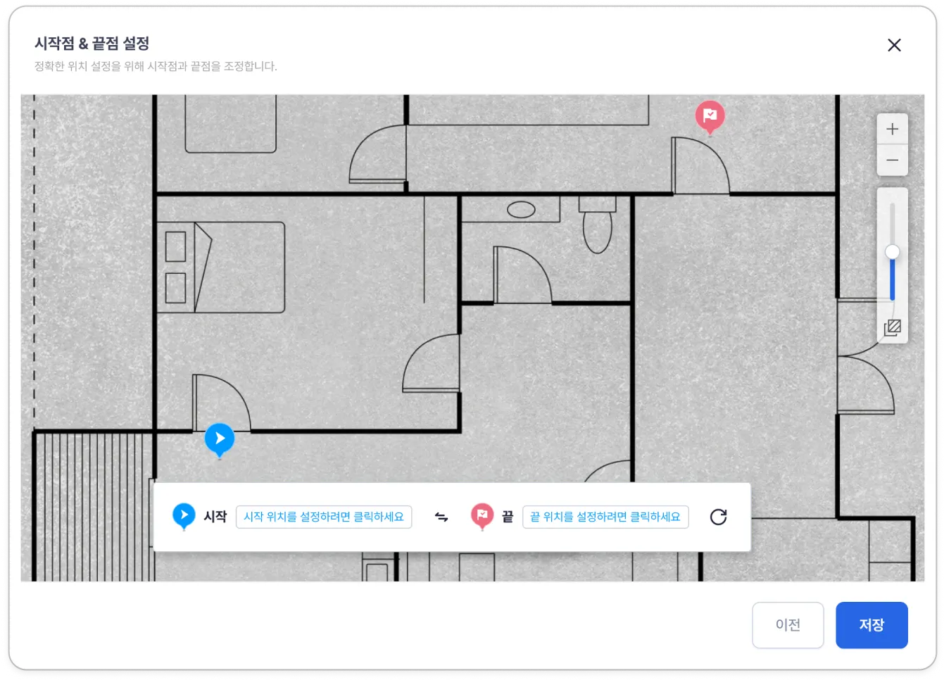 시작점 표시 방법: 하단의 시작 위치를 설정하려면 클릭하세요 버튼을 클릭하면, 커서가 시작점 아이콘으로 바뀝니다. 시작점 아이콘을 촬영 시작 위치에 놓아주세요.