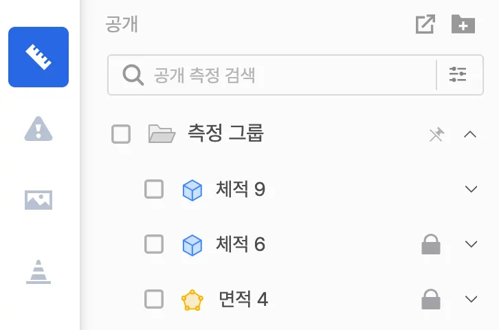 잠긴 폴더를 선택한 상태에서 새로운 측정을 생성하면, 비공개 공간에 측정이 생성됩니다.