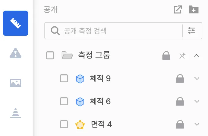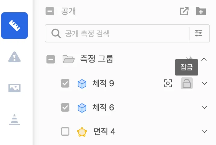 ‘도면’, ‘측정’, ‘안전관리’ 탭에 잠금 기능이 생겼습니다.