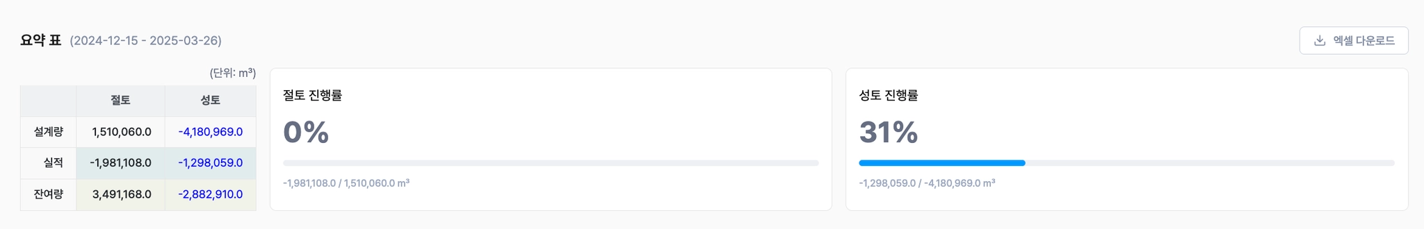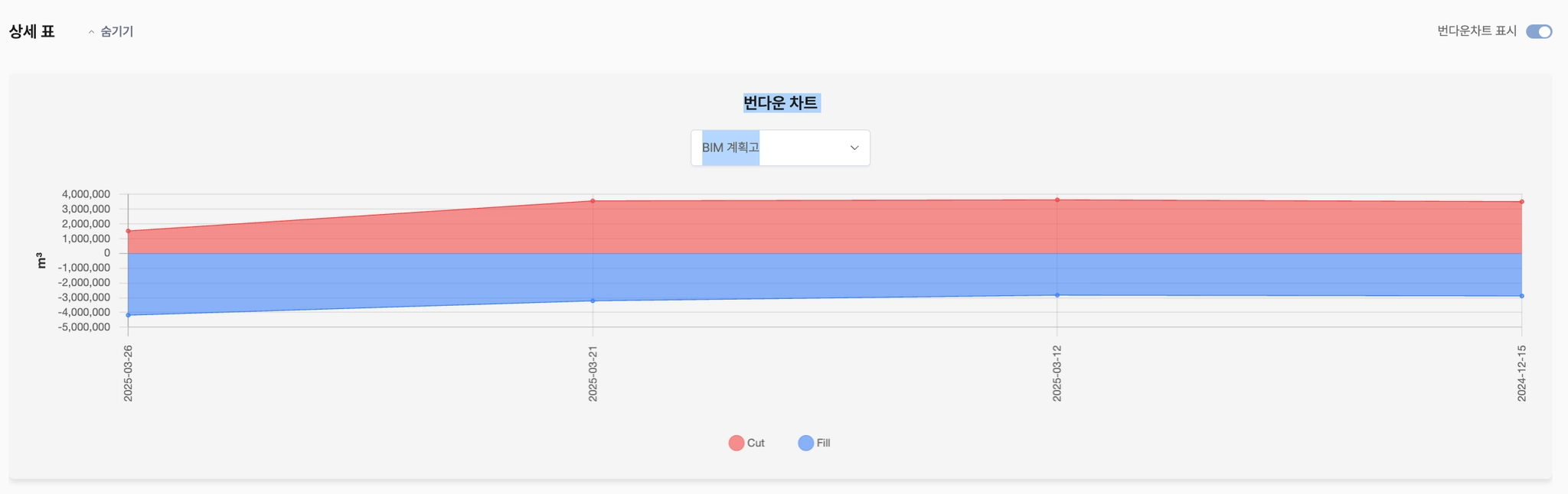 토공량 변화표에 반영할 날짜를 선택할 수 있습니다.