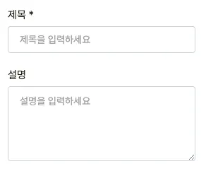 생성하려는 토공량 변화표의 이름과 설명을 작성해 주세요.