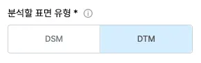 분석할 표면의 유형을 DSM과 DTM 중 한가지 선택해 주세요.