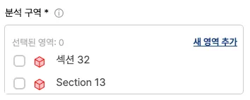 측정 탭에서 생성한 ‘체적’ 중에서 1개 이상을 선택할 수 있습니다.