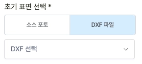 ‘초기 표면’으로 미리 업로드한 초기 표면 DXF 파일을 선택해 주세요.