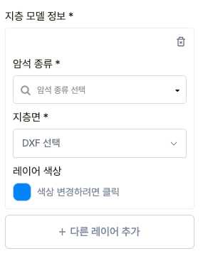 ‘다른 레이어 추가’ 버튼을 클릭 해 여러 암석층 정보를 입력할 수 있습니다.