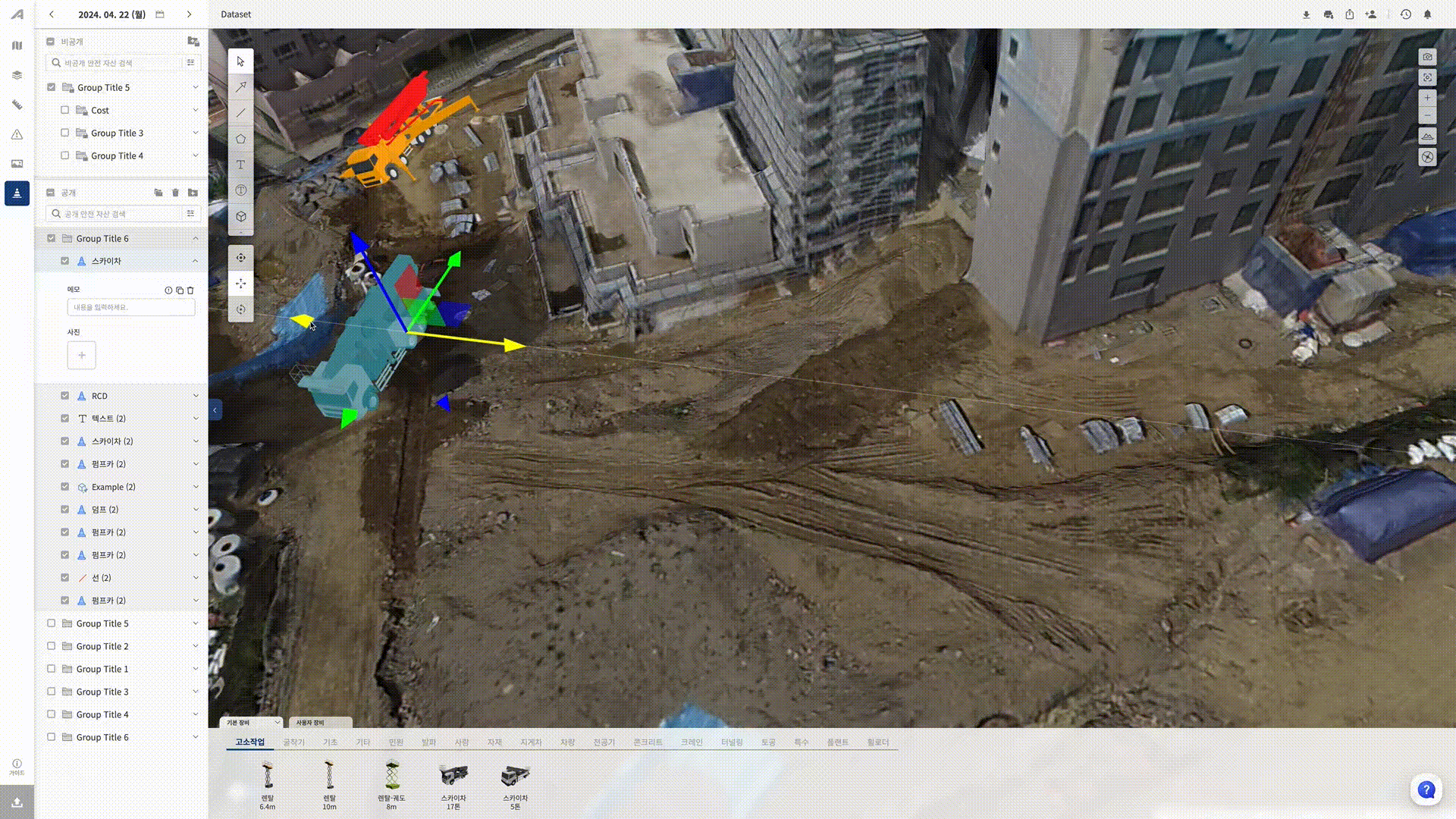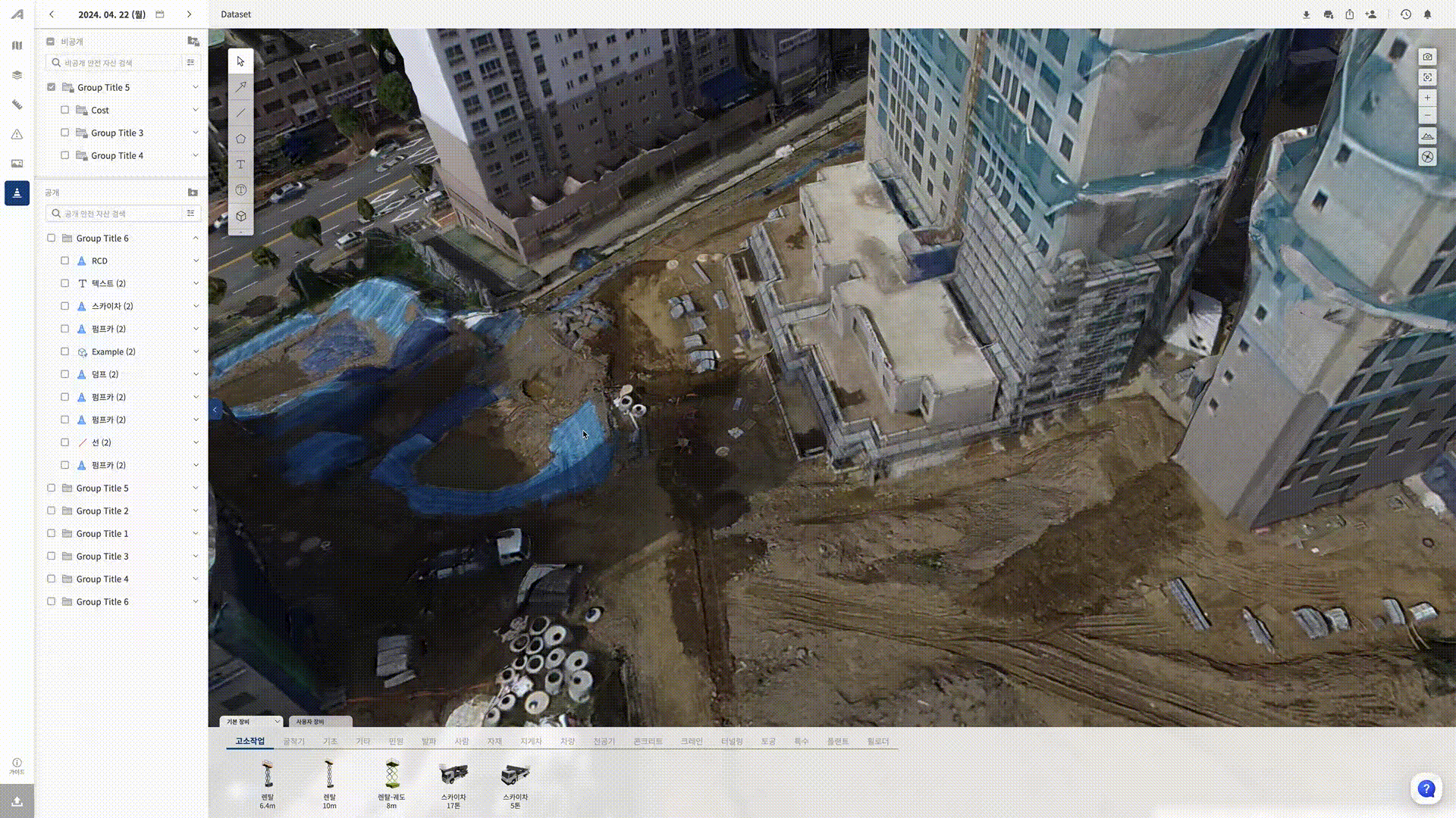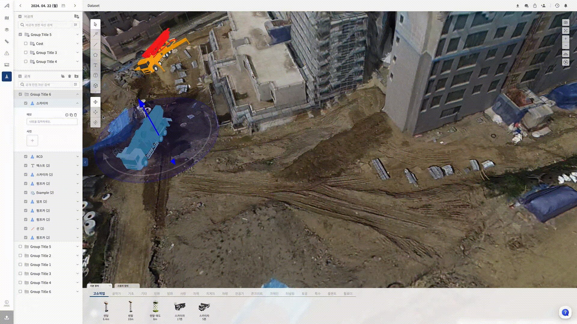 현장을 줌아웃(축소)하면 장비 아이콘이 표시되어요!